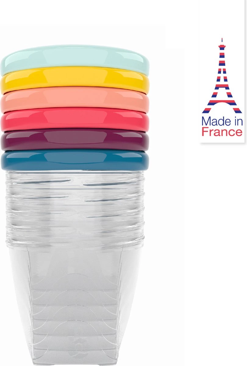 | Verpakkingsinhoud | 6 bewaarbakjes met beschrijfbare kleurrijke deksels |
