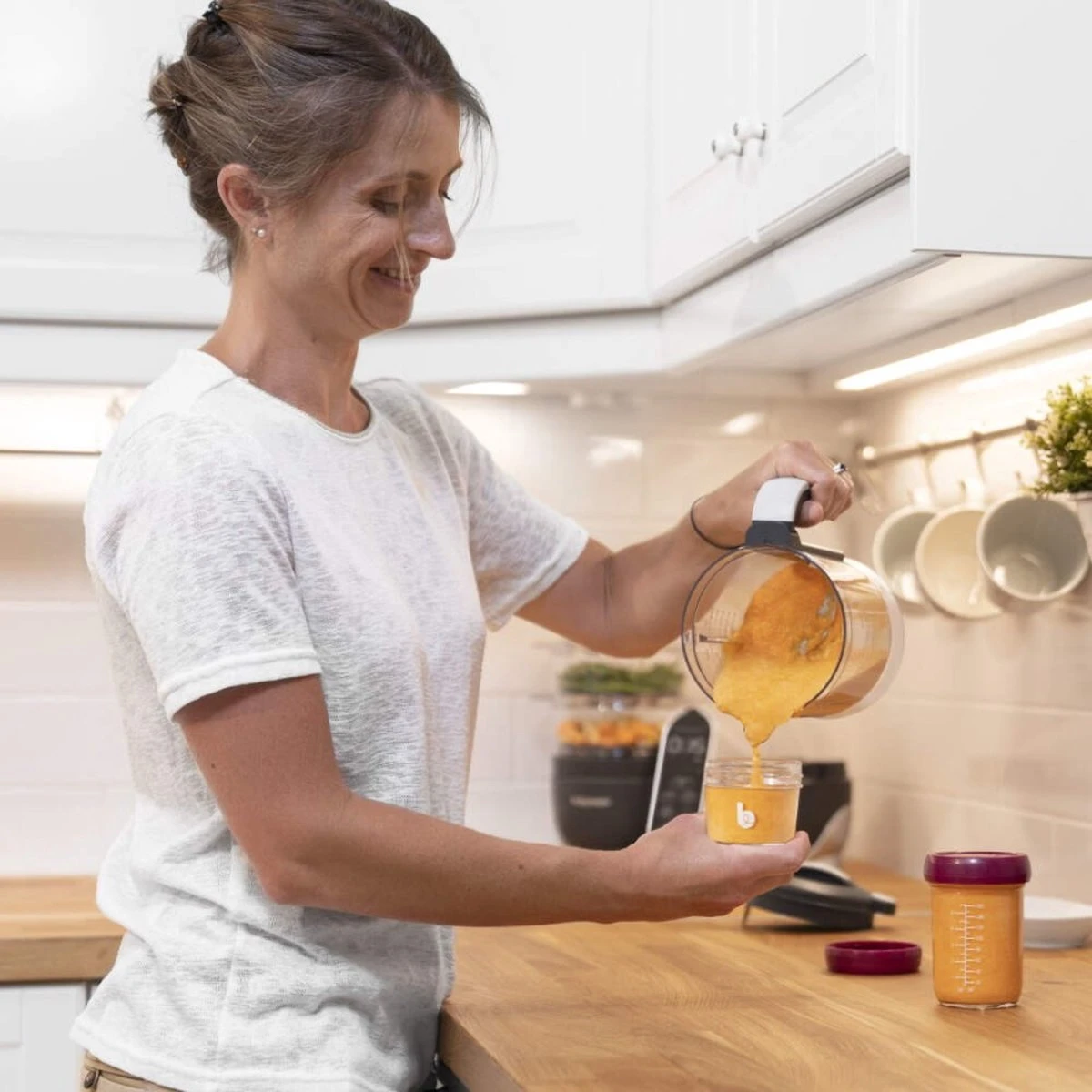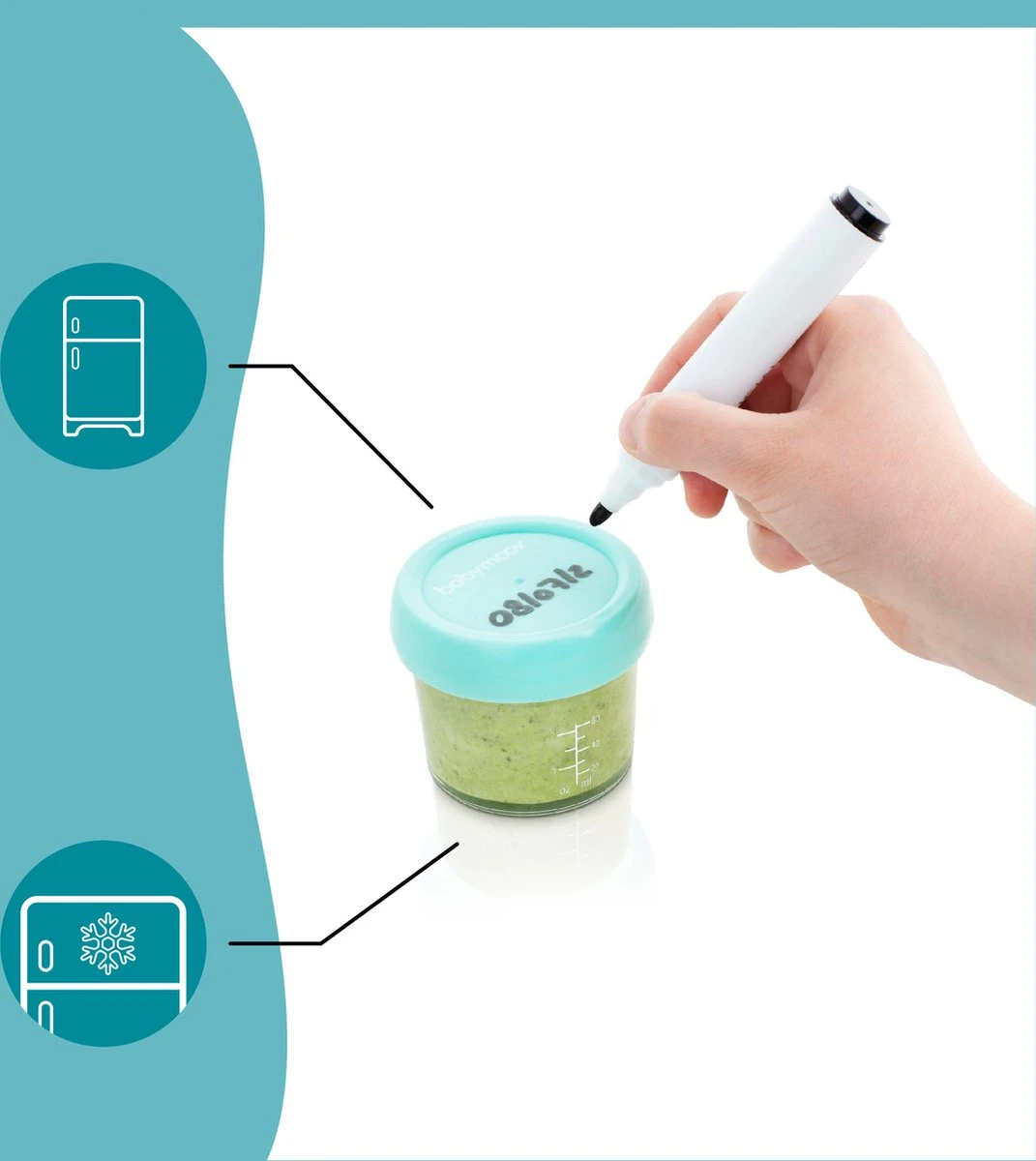 Met de glazen Babybols kunt u de maaltijden van uw baby gezond en eenvoudig bewaren. Waarom kiezen voor glazen bewaarpotjes? Glas is ideaal om voedsel in te bewaren. Het is een natuurlijk, duurzaam, ecologisch, neutraal en sterk materiaal. De glazen Babybols bewaren langdurig de smaak van voedsel. U hebt zelf puree of compote gemaakt voor uw kind. Die wilt u natuurlijk zo goed mogelijk bewaren. Deze bewaarpotjes hebben een inhoud van 240 ml. De silicone dichting sluit het schroefdeksel hermetisch af. De potjes hebben een graadverdeling in ml en oz en het deksel heeft een grote beschrijfbare ruimte. Zo kunt u bijvoorbeeld het bewaarde gerecht en de bereidingsdatum gemakkelijk noteren. De Babybols zijn stapelbaar zodat u ze gemakkelijker in de kast, de koelkast of de diepvriezer kunt plaatsen. De Babybols zijn gemaakt van glas en zijn daardoor hittebestendig. U kunt ze opwarmen in de magnetron (met de ontdooimodus als ze diepgevroren zijn), au bain-marie of in een flessenwarmer. Ze kunnen handig in de vaatwasser en kunnen ook gesteriliseerd worden. Deze bewaarpotjes zijn bijzonder duurzaam. Ze krijgen geen vlekken in contact met voedsel (zoals wortel of tomaat) en zijn recyclebaar.