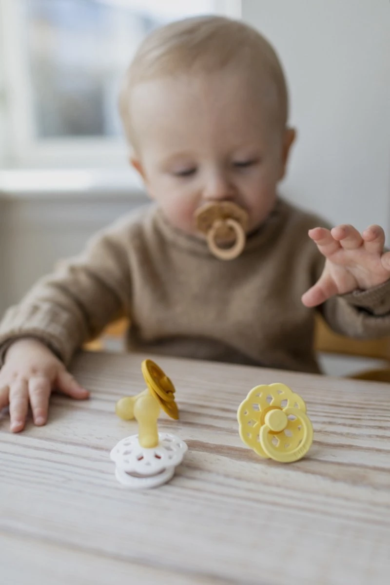 Onze Boheme-fopspeen is geïnspireerd op de moderne bohemienstijl. Met zijn natuurlijke elementen en organisch silhouet verschijnt Boheme in een fris, creatief en esthetisch ontwerp. De ronde speen van natuurlijk rubberlatex is ontworpen om te lijken op de vorm en grootte van de zachte tepel van de moeder en bevordert een vergelijkbare plaatsing van de tong en zuigtechniek bij het geven van borstvoeding. De fopspeen wordt daarom aanbevolen door verloskundigen om natuurlijke borstvoeding te ondersteunen.
