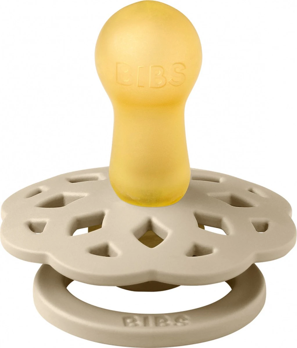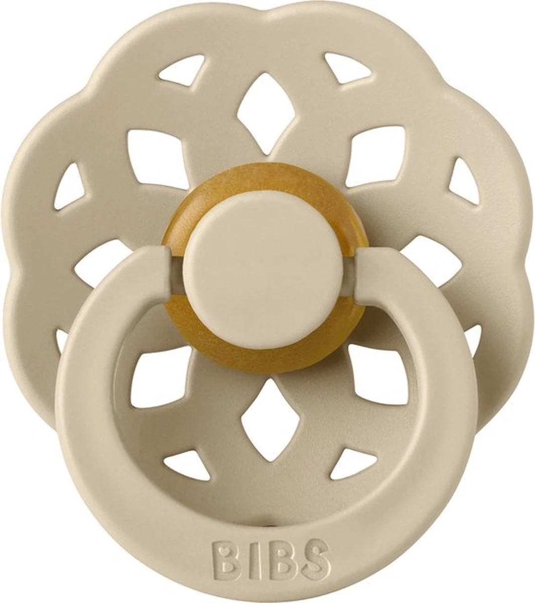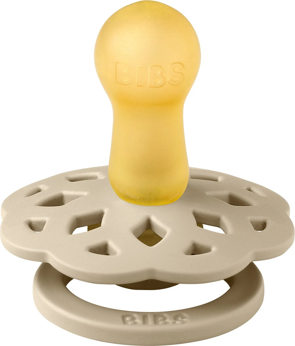 De BIBS fopspeen Bohmemian Vanilla bevat een comfortabele ronde bohemian vorm. BIBS fopspenen bestaan uit 100% natuurlijk rubber, zijn flexibel en voelen fluweelzacht aan. De BIBS speen is ontwikkeld om de zuigreflex van het kindje te ondersteunen. Het schildje van de speen is rond en buigt weg van het gezichtje, waardoor eventuele irritaties worden verminderd. De BIBS fopspeentjes komen in énorm veel kleuren voor en hier blijven talloze prachtige creaties bijkomen. Naast het unieke design van de speen, heeft de BIBS speen ook hoogwaardige kwaliteiten én voelt deze comfortabel aan.