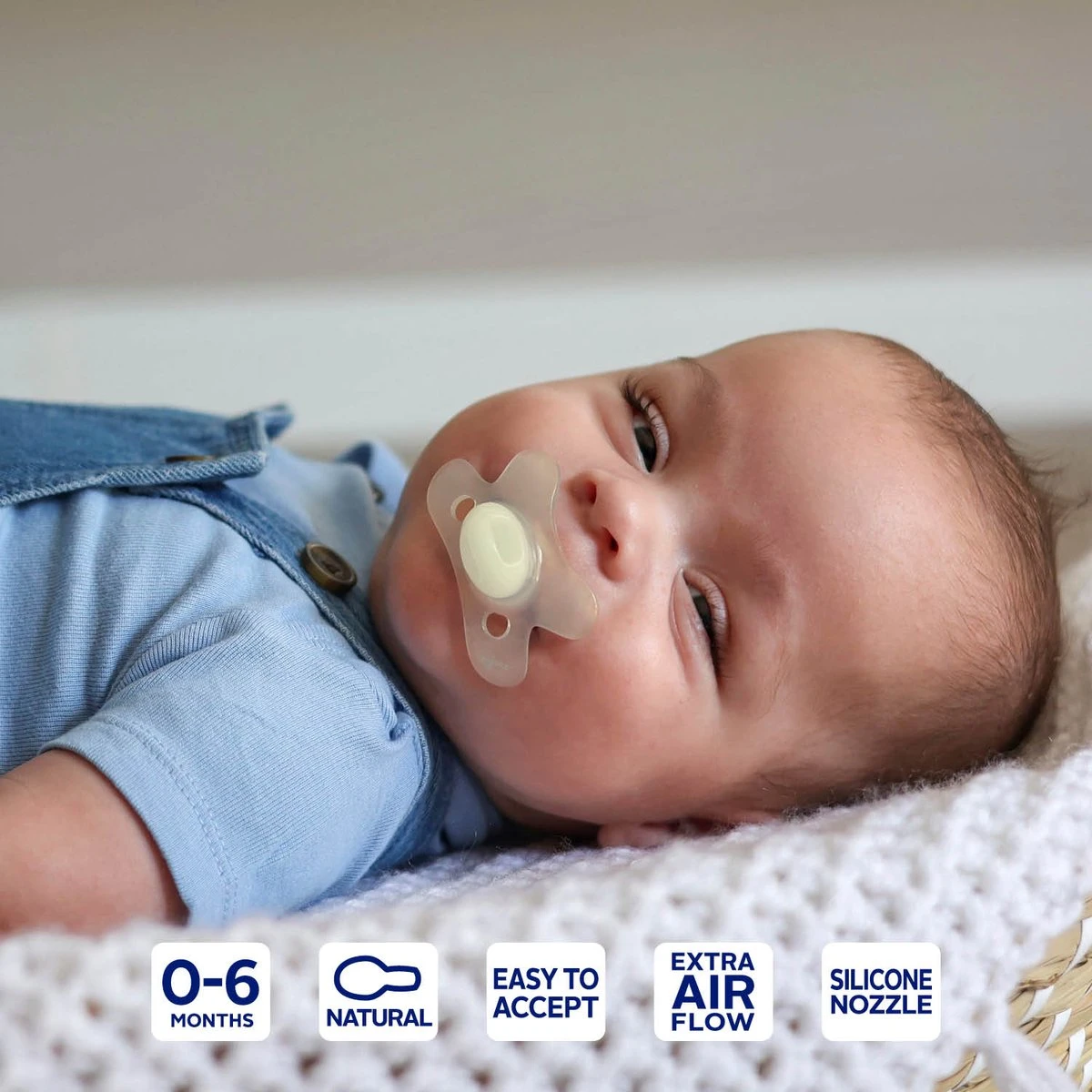- De gaatjes in het fopspeenschildje zorgen voor extra luchttoevoer wat huidirritatie voorkomt. .