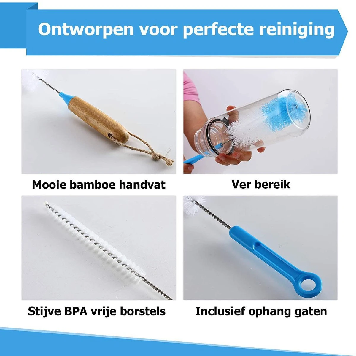 - Extra lange smalle borstel: ideaal om flessen schoon te maken.