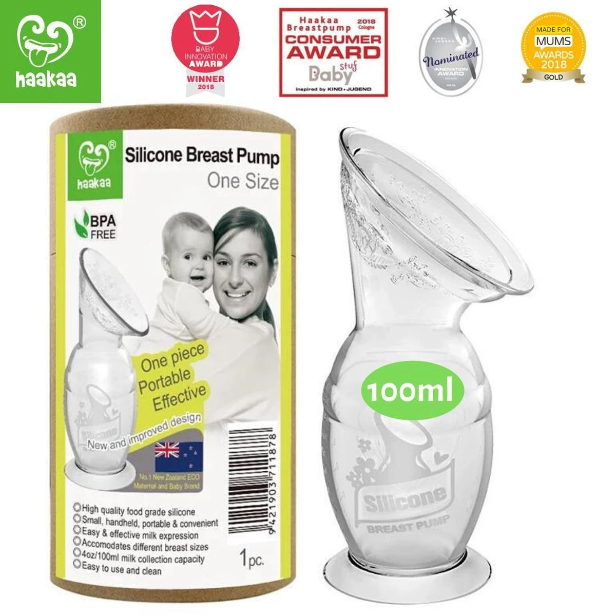 Deze compacte opvanger van 100 ml is gemaakt van 100% natuurlijk voedselkwaliteit silicone.
