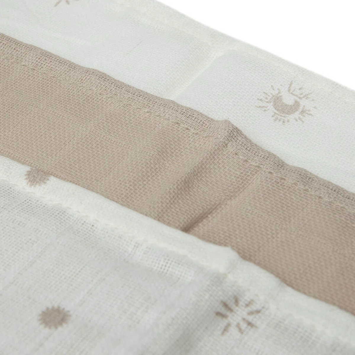 De monddoekjes worden geleverd in een 3-pack. De doekjes kun je lekker heet uitwassen zodat ze altijd weer hygiënisch te gebruiken zijn. Je mag ze wel strijken, maar slim om dat juist niet te doen. Ongestreken hydrofiel doeken nemen meer vocht op.