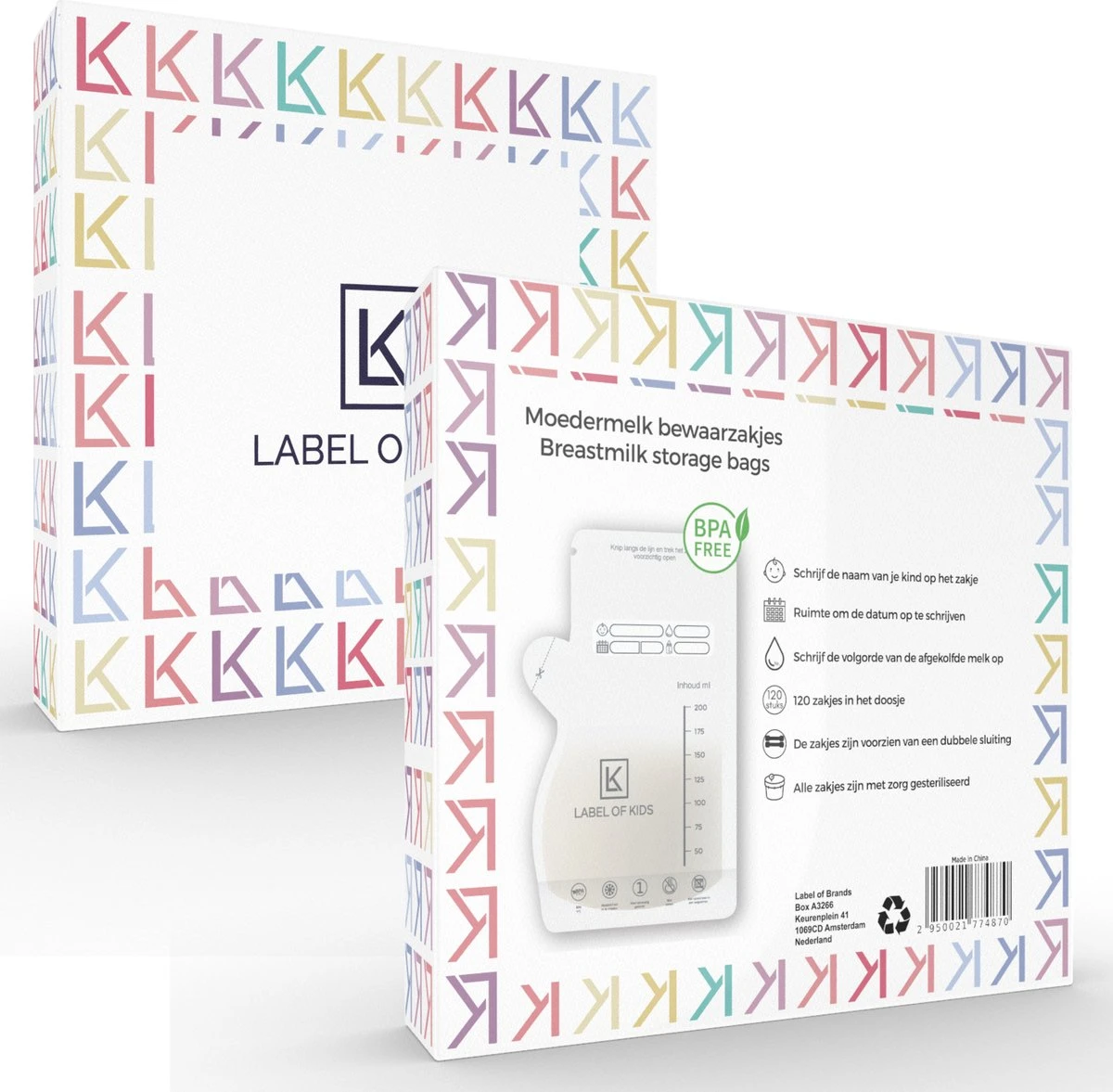 Met de Label of Kids Moedermelk Bewaarzakjes bewaar je melk volledig steriel, en neem je het makkelijk overal mee naar toe. Het ruimtebesparende ontwerp met schenktuit voorkomt morsen, en zorgt ervoor dat de zakjes gegarandeerd in de luiertas passen.