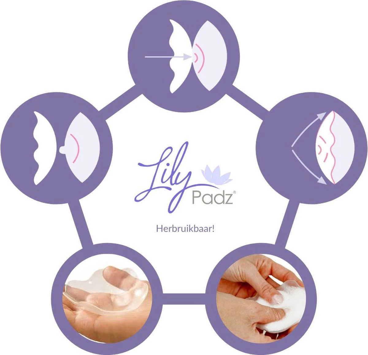 LilyPadz Zoogcompressen van siliconen voorkomen het lekken van moedermelk, zijn wasbaar, onzichtbaar en gebruik je steeds opnieuw. Er valt dus niets te absorberen.