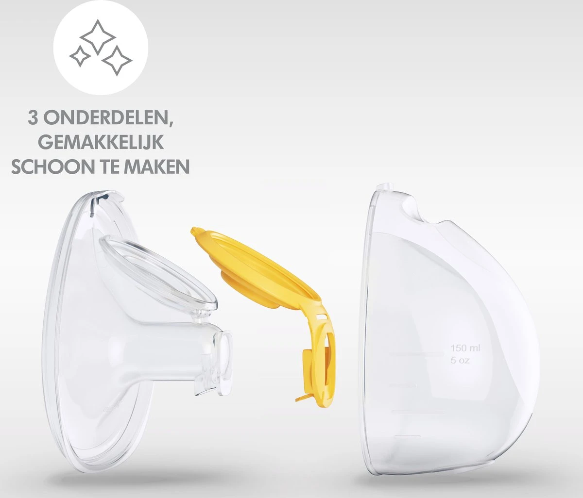 • Slechts 3 onderdelen: dankzij het minimalistische ontwerp met slechts 3 onderdelen zijn de opvangcups eenvoudig uit elkaar te halen en vervolgens gemakkelijk af te wassen of in de vaatwasser schoon te maken.