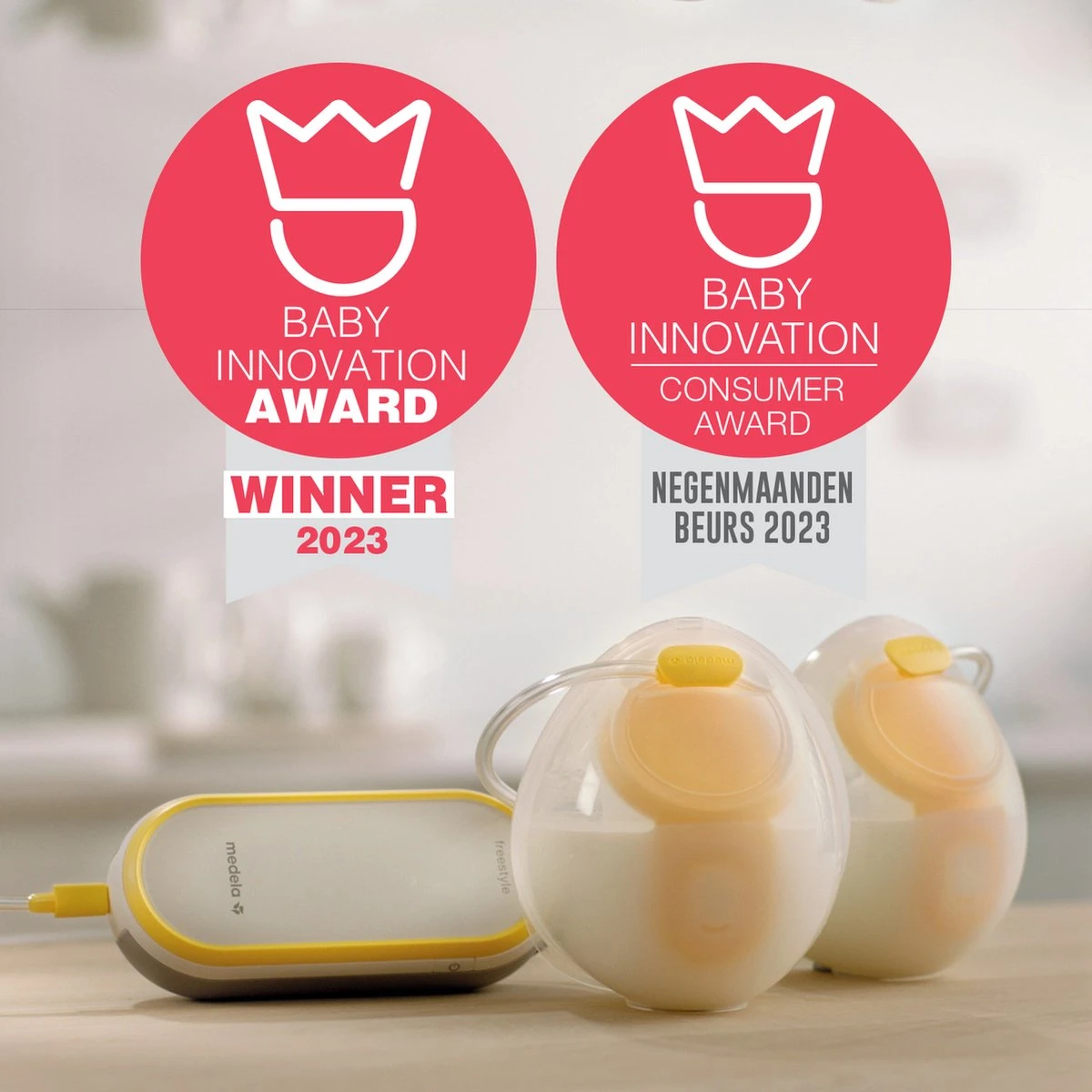 Medela Freestyle Hands-Free is winnaar van de Baby Innovation Award 2023 categorie Feeding en de Baby Innovation Consumer Award, toegekend door vakjury en consumentenpanel.