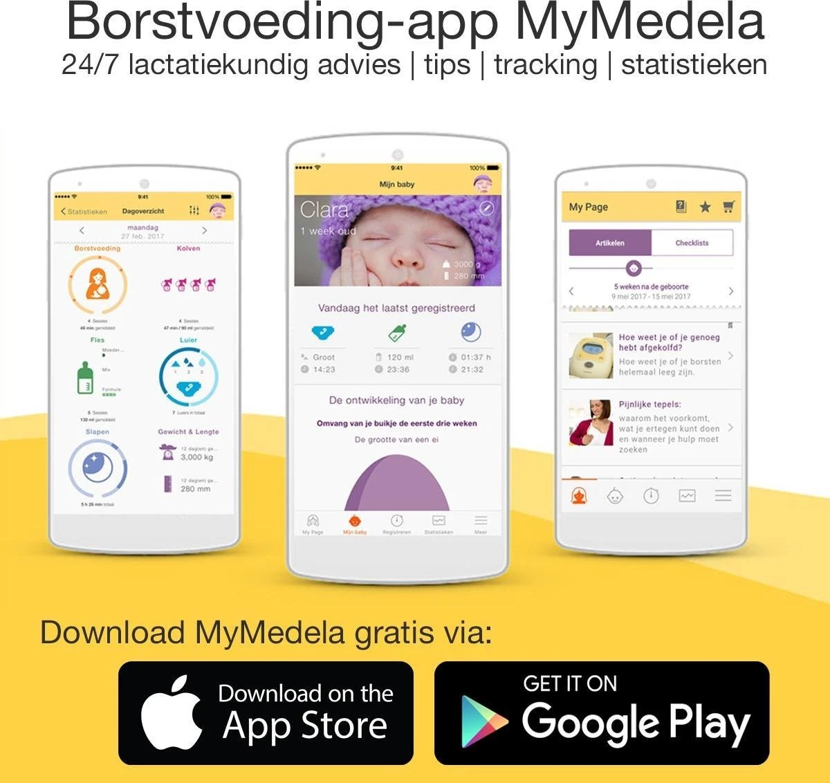 MyMedela is de borstvoeding-app van Medela die advies en tips geeft en antwoorden heeft op alle mogelijke vragen waar je als (aanstaande) moeder mee zit.