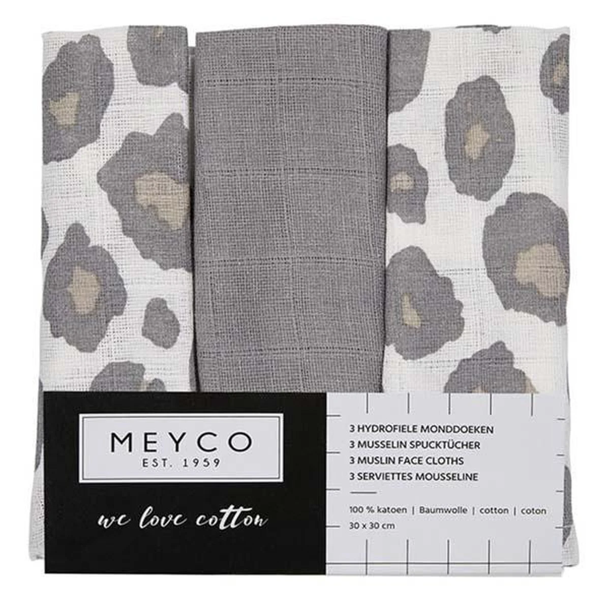 Hydrofiele spuugdoekjes Panter Grijs (3 stuks) | Meyco
