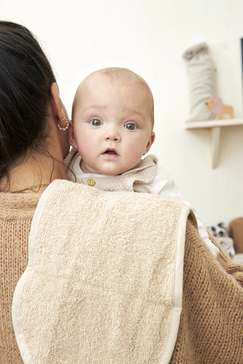 Geeft je kindje regelmatig wat voeding terug tijdens het voeden? Met deze Meyco Baby Spuugdoek Basic Badstof over je schouder vang je alles netjes op als je kleintje met zijn of haar hoofdje over je schouder hangt voor bijvoorbeeld een boertje. Ideaal! De langwerpige en gekromde vorm past perfect over je hele schouder heen.