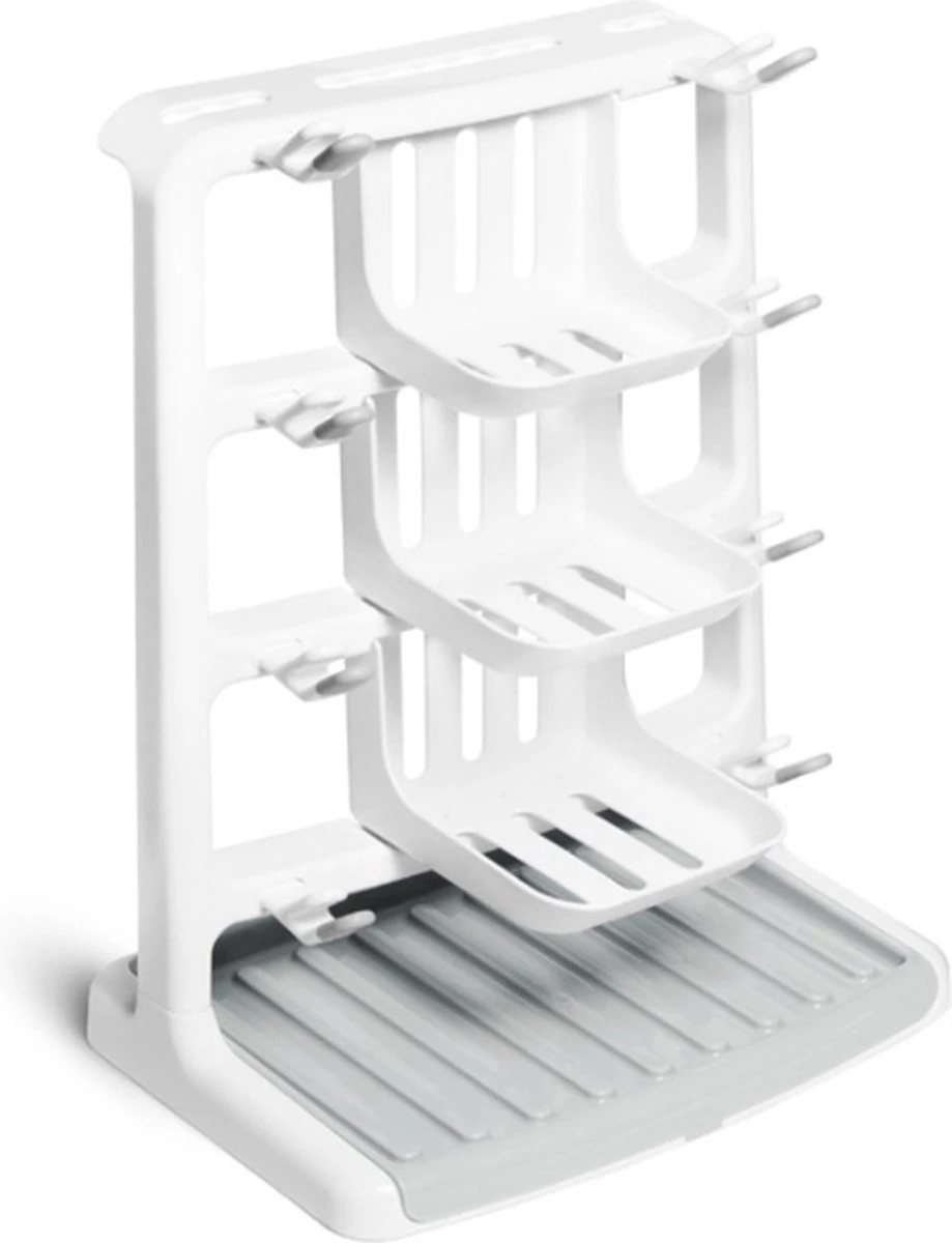 Een goed plekje vinden om alle flesjes te laten drogen is niet gemakkelijk. Met dit handige ruimtebesparende droogrek van Munchkin gebruik je zo min mogelijk aanrechtruimte en kan je alles netjes en georganiseerd laten drogen. Het droogrek is ontworpen voor flessen, spenen, afsluitschijfjes, bekers, rietjes en kleppen.