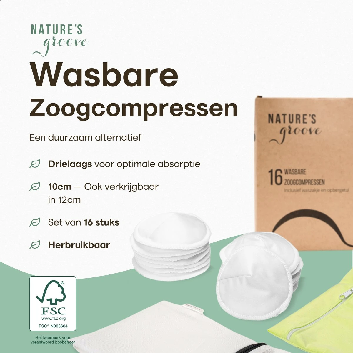 Doorlekken voorkom je met de NATURE’S groove® wasbare zoogcompressen, van zacht bamboe voor blijvend comfort óók bij veelvuldig hergebruik. Goed voor jou én moeder natuur!