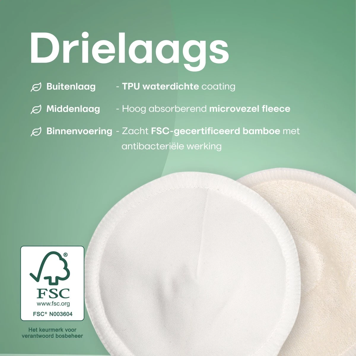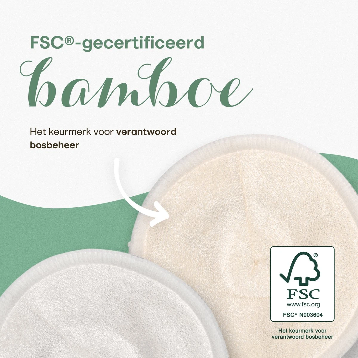 De 3-laagse bamboe samenstelling voelt extra zacht aan op de meest gevoelige huid. Dat terwijl hij maximale absorptie biedt. Daarnaast zijn de compressen natuurlijk volledig herbruikbaar, waardoor je geen afval creëert. Daarbij komt dat de bamboe FSC®-gecertificeerd is. Als je voor dit product kiest, zorg je niet alleen goed voor jezelf, maar bescherm je óók onze bossen wereldwijd!