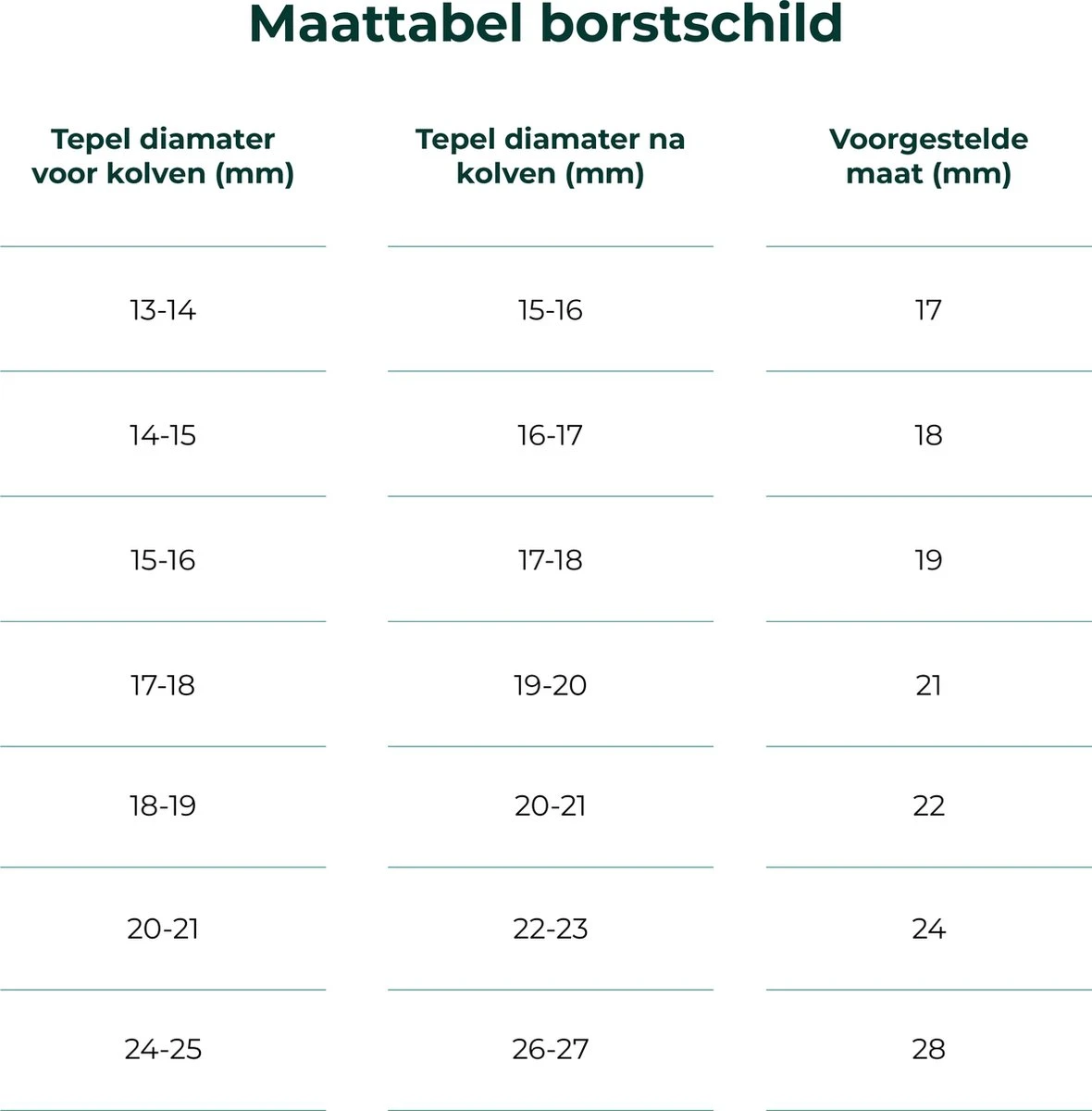 Meet de diameter van je tepel op. Tijdens het kolven wordt de tepel wat groter. De tepel moet vrij in de tunnel kunnen bewegen. Tel daarom bij de meting 2 à 3 millimeter op. Lees goed in de producttitel welke maat je besteld!