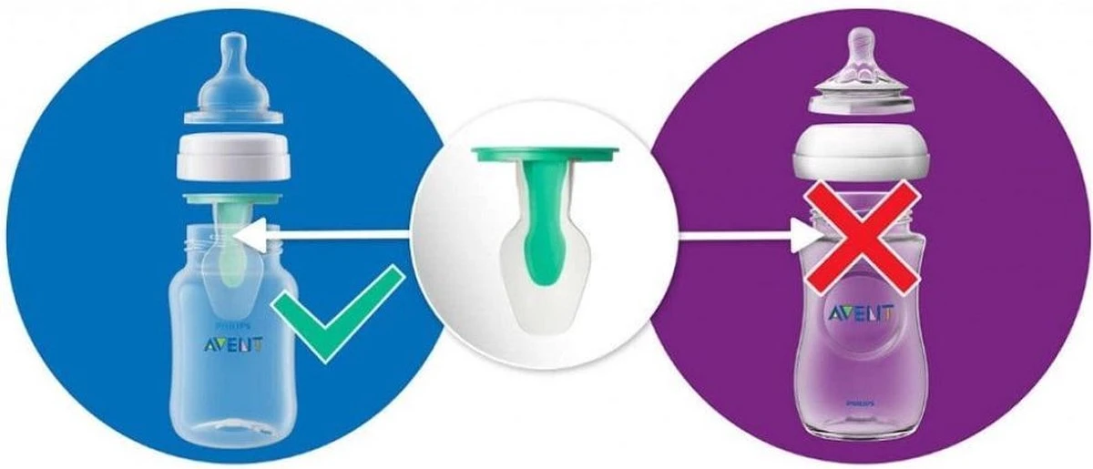 Het Philips Avent AirFree-ventiel kun je gebruiken met de Philips Avent Anti-Colic flessen van 125, 260 en 330 ml. Het AirFree-ventiel is niet compatibel met de Natural-flessen.