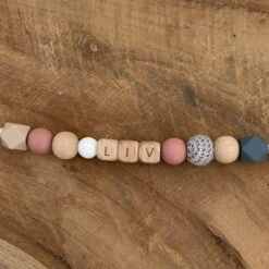 Speenkoord Met Naam Lalieloe – Speenhouder – Kraamcadeau – Speenketting – Woody Grey Naam