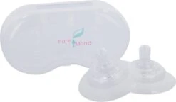 Pure Moms Tepelhoedjes Beschermen Je Tepels En Helpen Het Aanleggen Vergemakkelijken Als Dit Niet Goed Lukt Of Pijnlijk Is – 2 Cm Speen – 2 Stuks – 0-12 Maanden, 1-2 Jaar – BPA Vrij – Beschermend Bakje