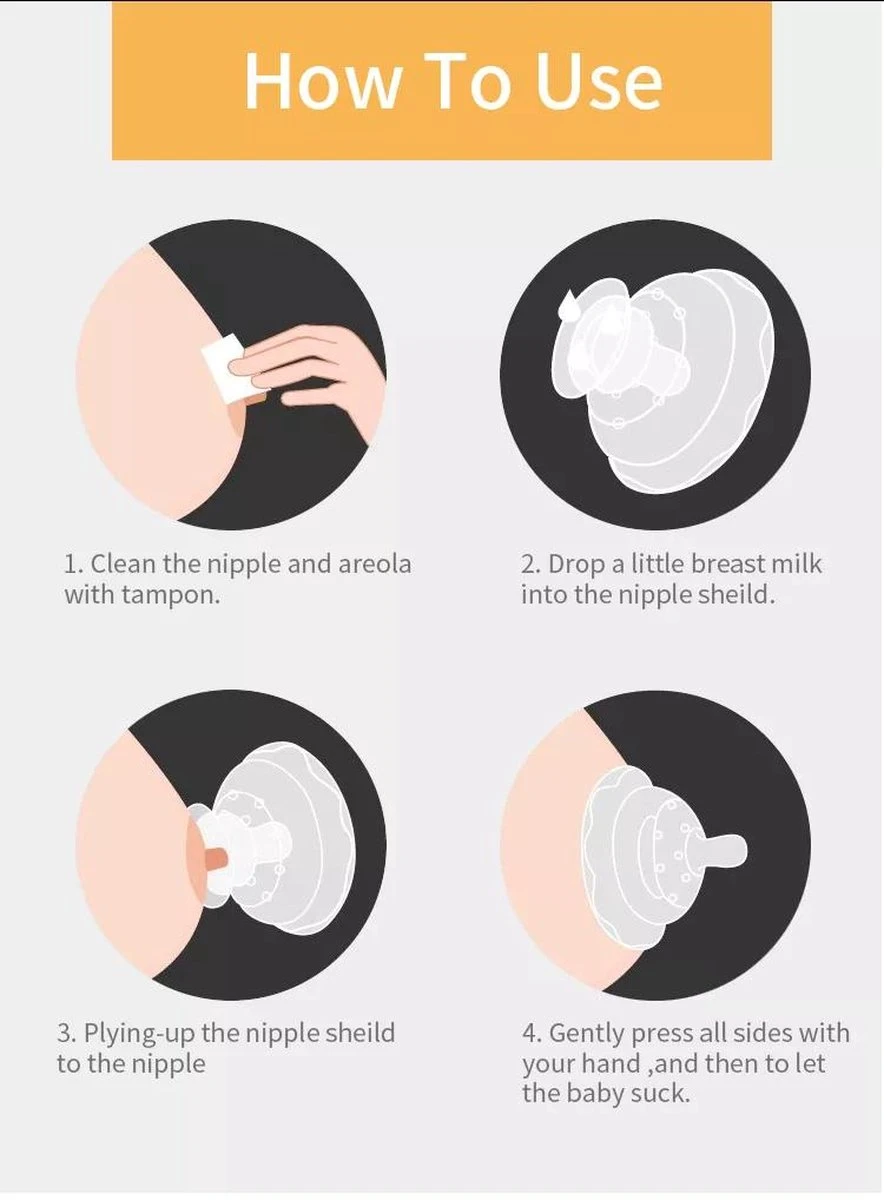 Door het siliconen ontwerp is het tepelhoedje makkelijk in gebruik. De gehele tepel en het tepelhof worden bedekt met de tepelbeschermer. Zorg ervoor dat de tepel zo ver mogelijk in het hoedje zit. De baby kan hierdoor makkelijk melk opnemen en het kapje blijft beter zitten.